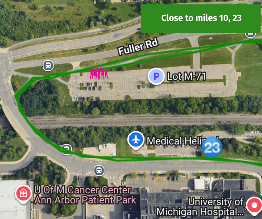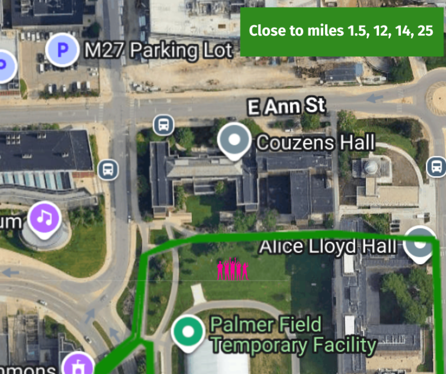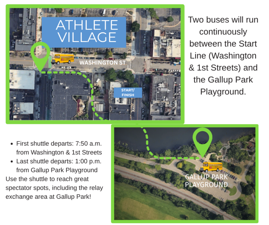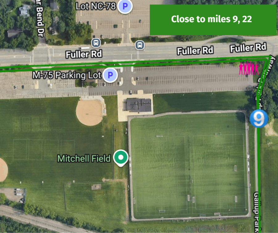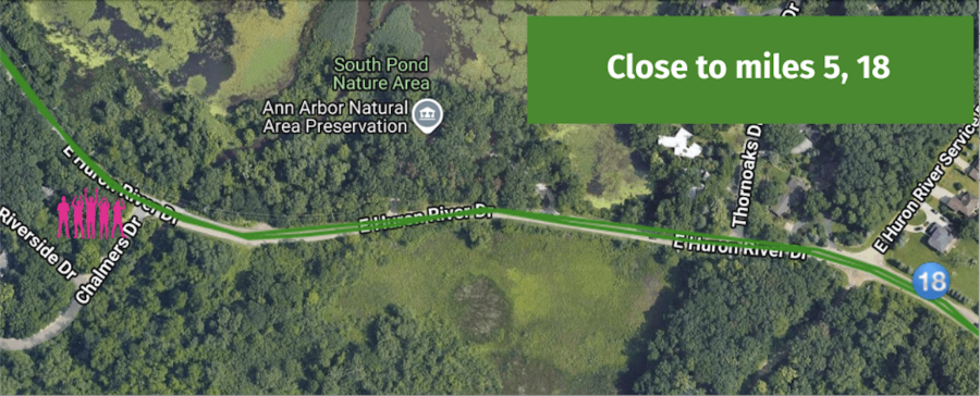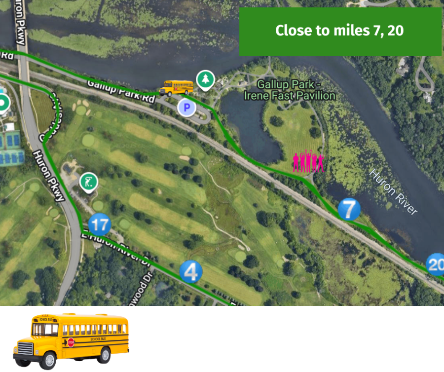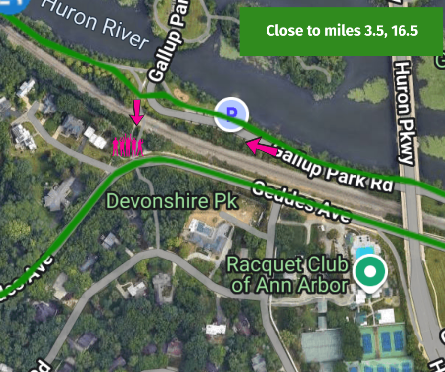A free shuttle runs between the start line and Gallup Park Playground (miles 7 and 20), which also serves as a Marathon Relay exchange point. Hop on the shuttle to access this and other great spectator locations — check the map for details!